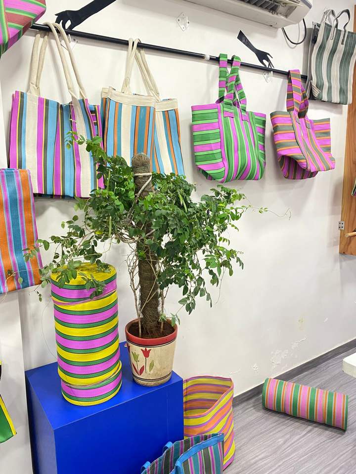 Eco-Friendly Reusable Nylon Storage Bag RPET Zipper Striped Handloom Woven Recycled Plastic Beach Bags Fashion Style Travel Case
