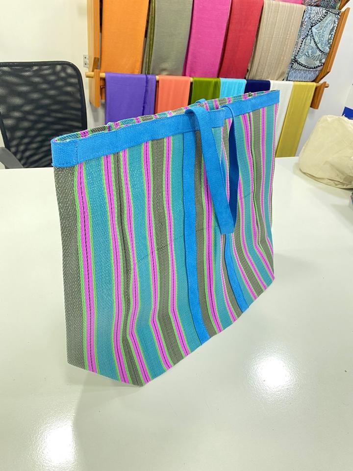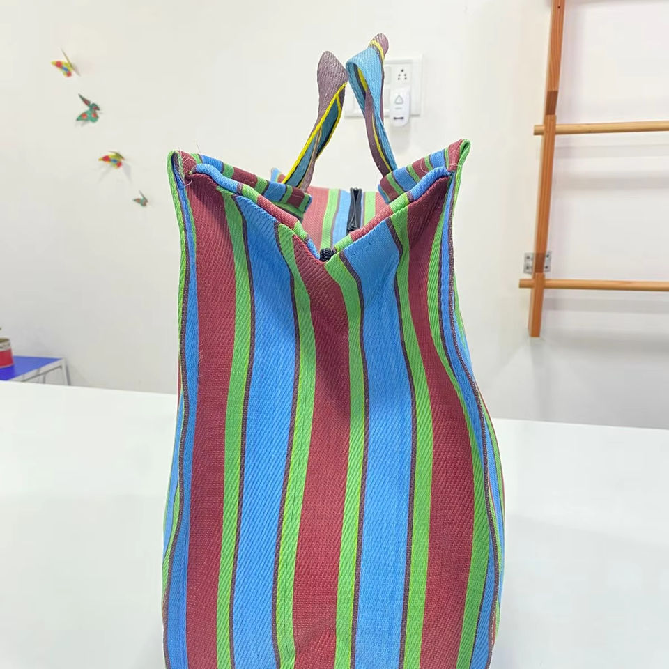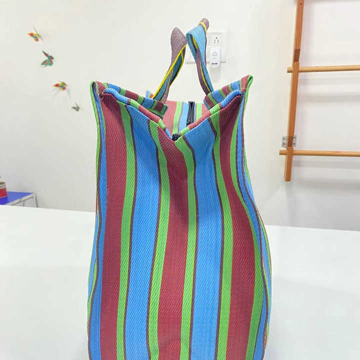 Eco-Friendly Reusable Recycled Nylon Shopping Bag RPET Zipper Striped Handloom Woven Custom Logo Fashion Beach Bags Made India
