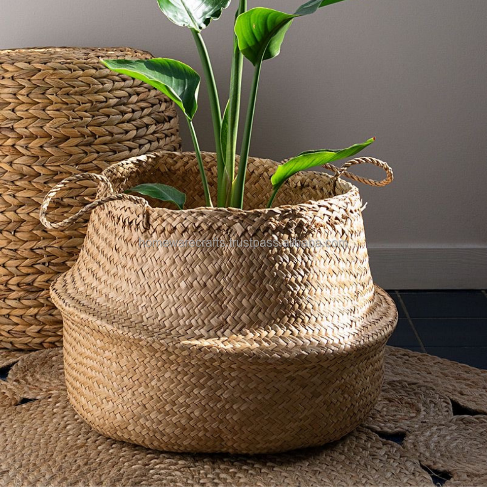Eco-Friendly Seagrass Belly Basket Vietnam Handmade Storage Woven Basket Wholesale for Nursery Toys & Plant Cover Gift Ready