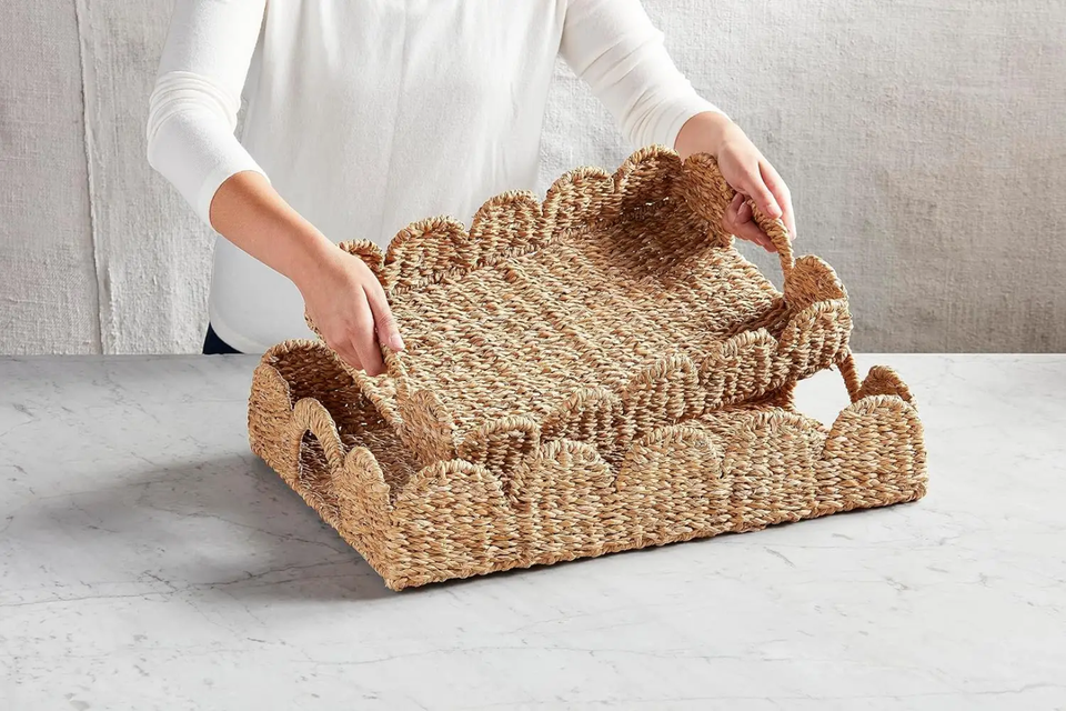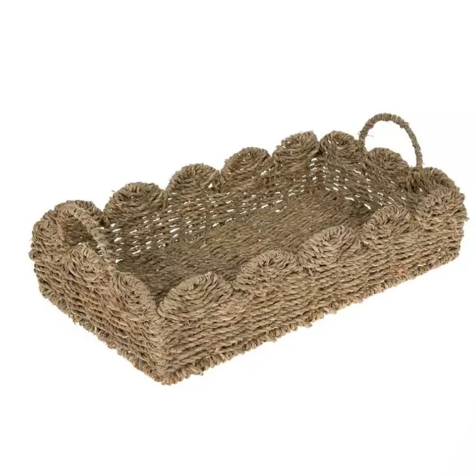 Eco Friendly Rustic Seagrass Rectangular Tray Handwoven Scalloped Edge Serving and Decorative Tray
