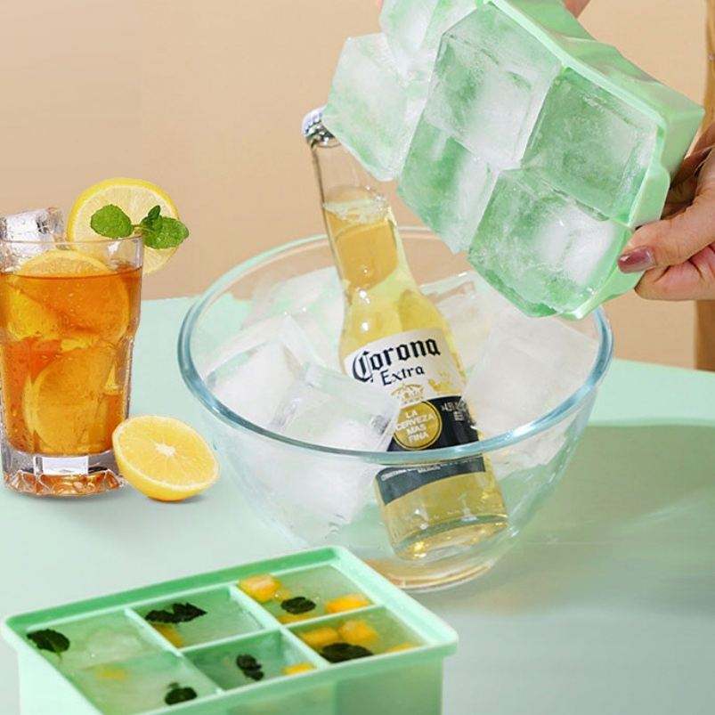 Eco-Friendly Silicone Ice Cube Mold with Easy Release Lid 6/8 Grids Square Mold Silicone Ice Cream Maker Tool