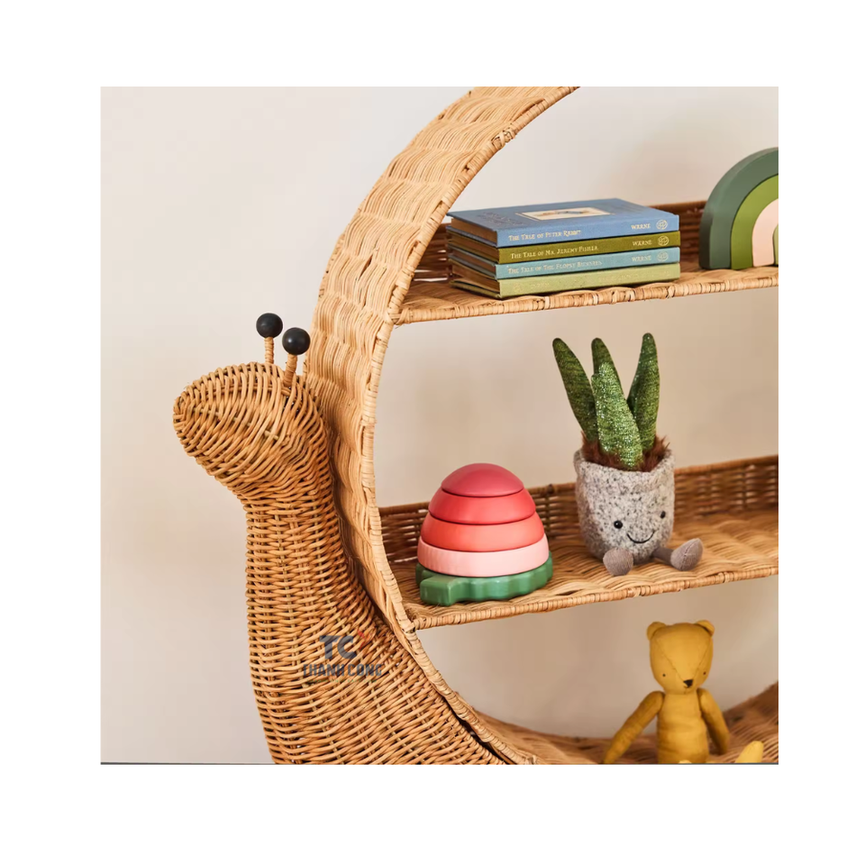 Eco - Friendly Snail Shaped Bookshelves Wooden Book Storage Rack Vintage Rattan BookShelf Made in Vietnam