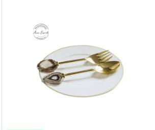 Luxury Gold Salad Server Set Modern Spoon Fork Utensils Elegant Flatware Dining Tableware Kitchen Decor Design