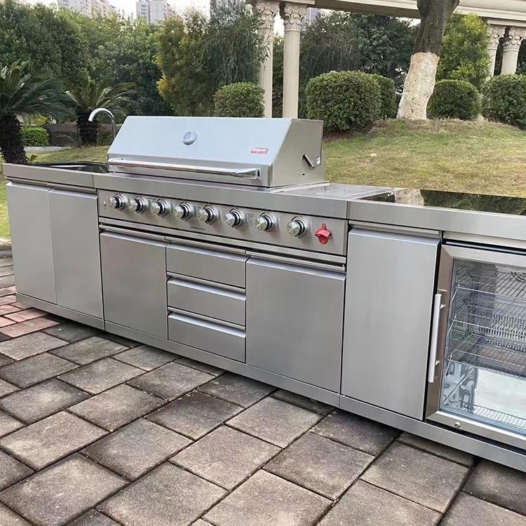 Eco-Friendly Stainless Steel Outdoor Kitchen Cabinets with Sink Faucet Fridge Oven Door Furniture Modular Design