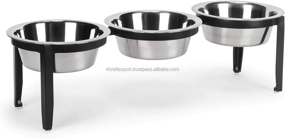 Eco-Friendly Stainless Steel Pet Food & Water Feeding Container 3-Piece Set with Iron Stand Kitten Puppy Food Bowl Pet Supplies