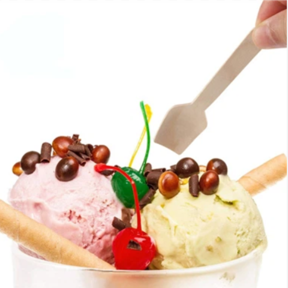 Eco-Friendly Sustainable 95mm Birchwood Dessert Spoon Multi-Purpose Disposable Wooden Cutlery for Ice Cream Big Purchase