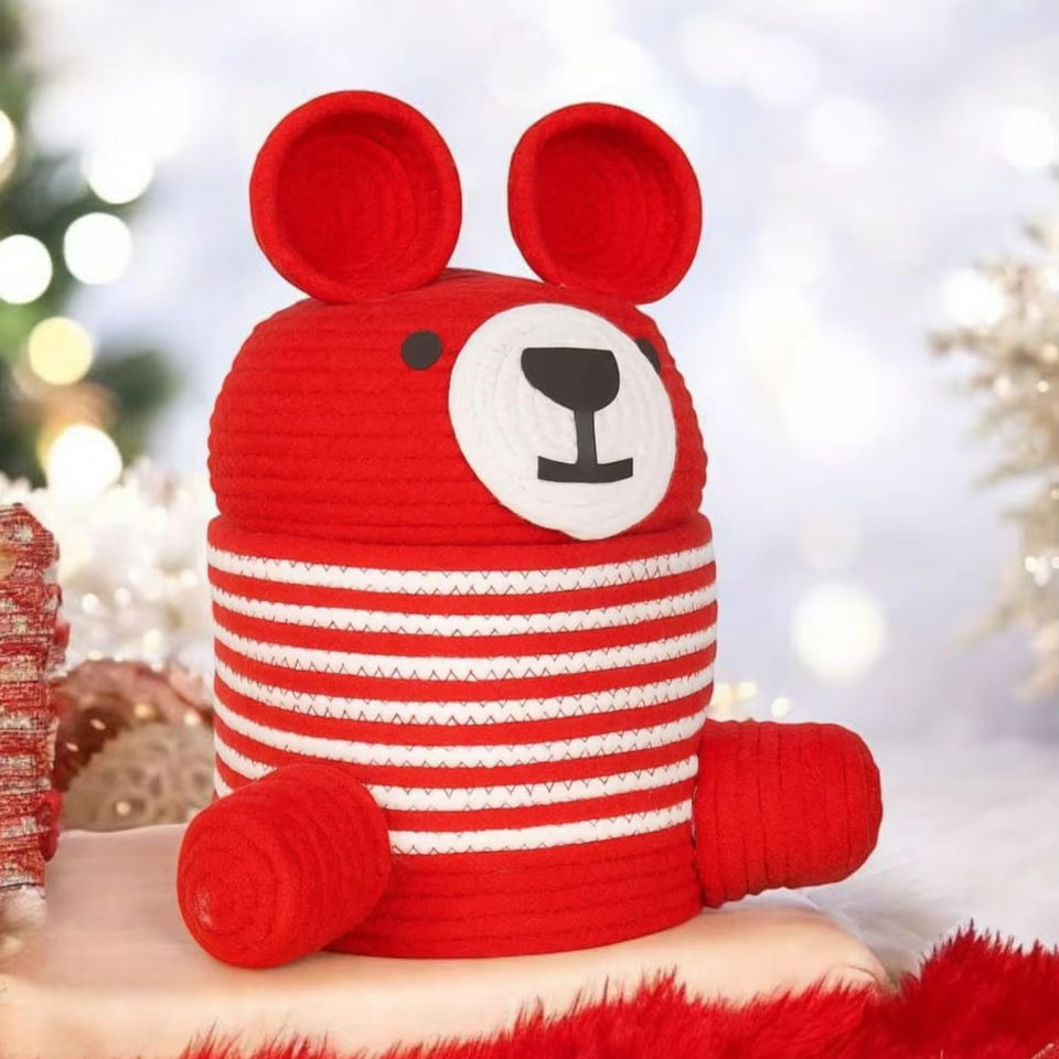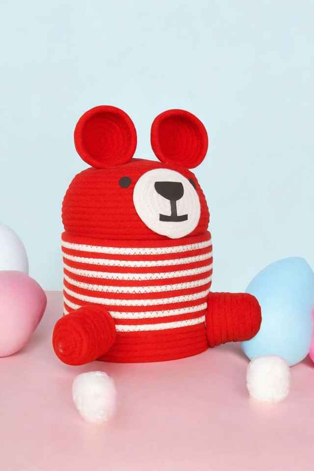 Eco-Friendly Teddy Bear Design Nursery Storage Basket Handwoven Cotton Rope Toy Organizer For Kids Room Organizer