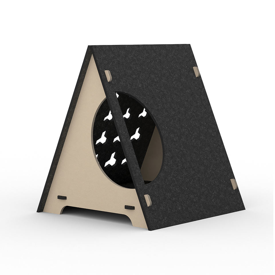 Eco-Friendly Triangle Foldable Cat Bed Wool Acoustic Felt Enclosure Soundproof Pet Cave with Side Openings for Anxious Cats