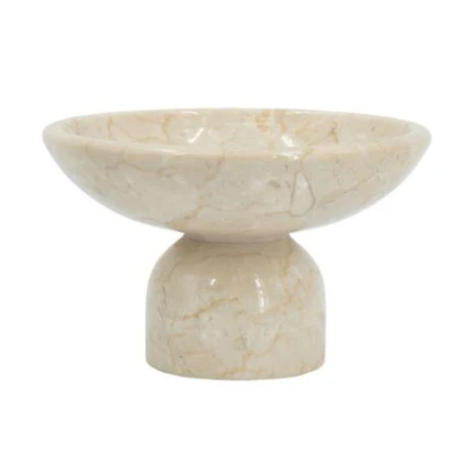 Eco-Friendly Vintage Large Natural Grey Marble Pedestal Bowl Elegant Footed Stone Serving Decorative Centerpiece for Weddings