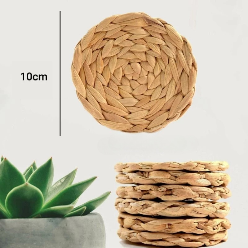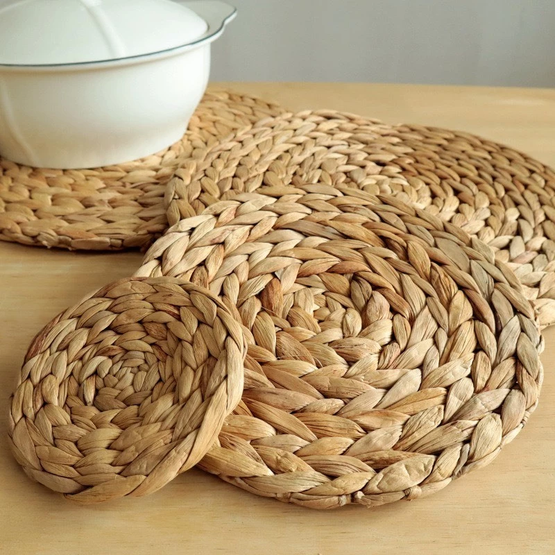 Eco-Friendly Water Hyacinth Coaster Set - Handmade Natural Braided Coasters for Dining & Kitchen, Elegant and Durable Placemat