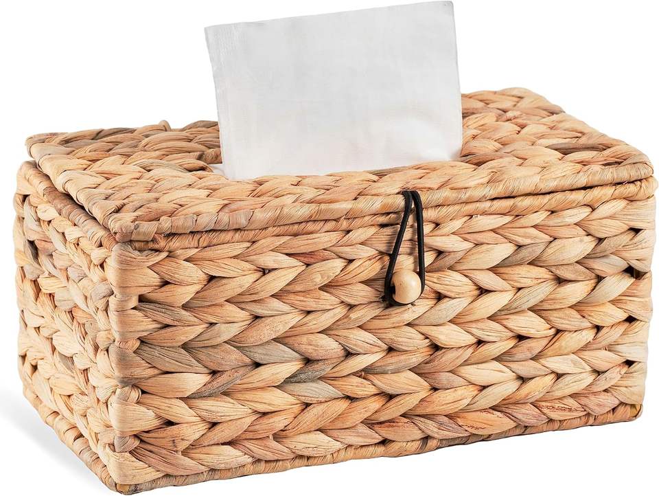 Eco-Friendly Water Hyacinth Desktop Organizer Storage Basket for Napkins Tissue Boxes for Kitchen Use