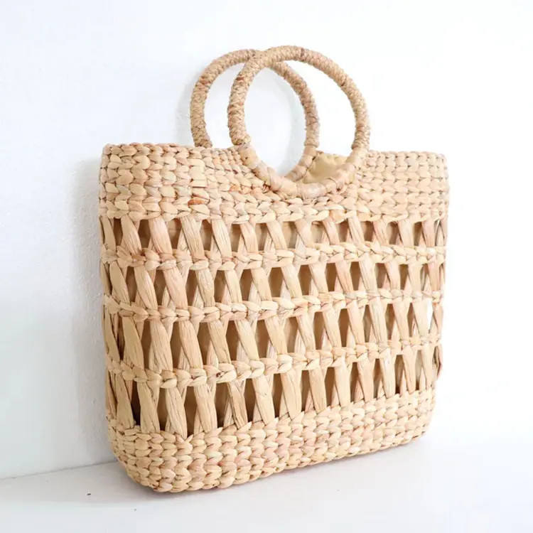 Vintage Eco-Friendly Water Hyacinth Straw Bag Unique Preppy Lady Handicraft Cotton Lining for Beach Holidays Weekends-Vietnam