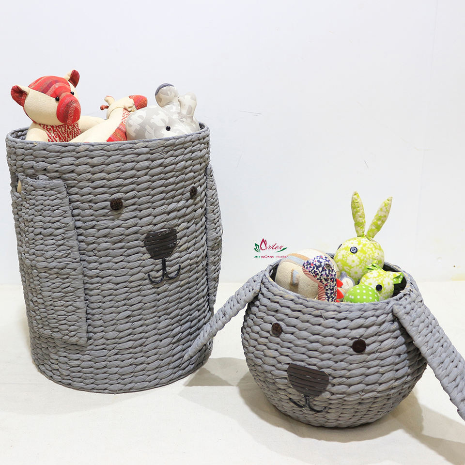 Eco-Friendly Water Hyacinth Woven Basket with Lid, Handmade Cute Pet Face Design for Organizing & Decor