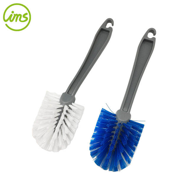 Eco-Friendly White/Blue Kitchen Scrub Brush with Long Plastic PP Handle for Sink Cleaning