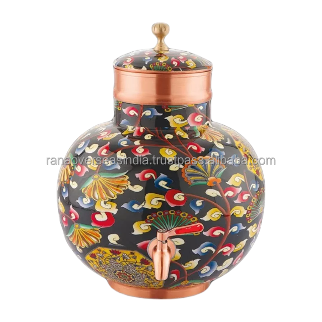 Eco Friendly Wholesale Multi Tone Floral Printed Copper Water Tank Enamel Copper Dispenser for Water Storing Purpose