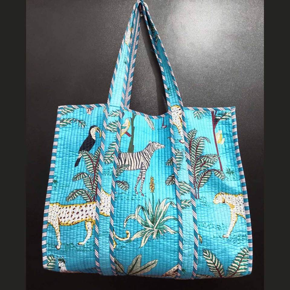 Eco Friendly Wildlife Animal Print Quilted Tote Bag Handcrafted Leopard Print Quilted Tote Sustainable Large Capacity Tote Bags