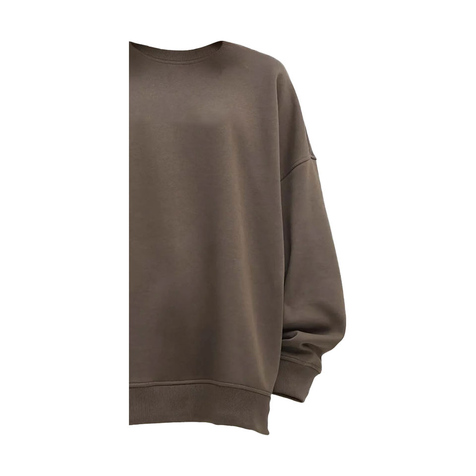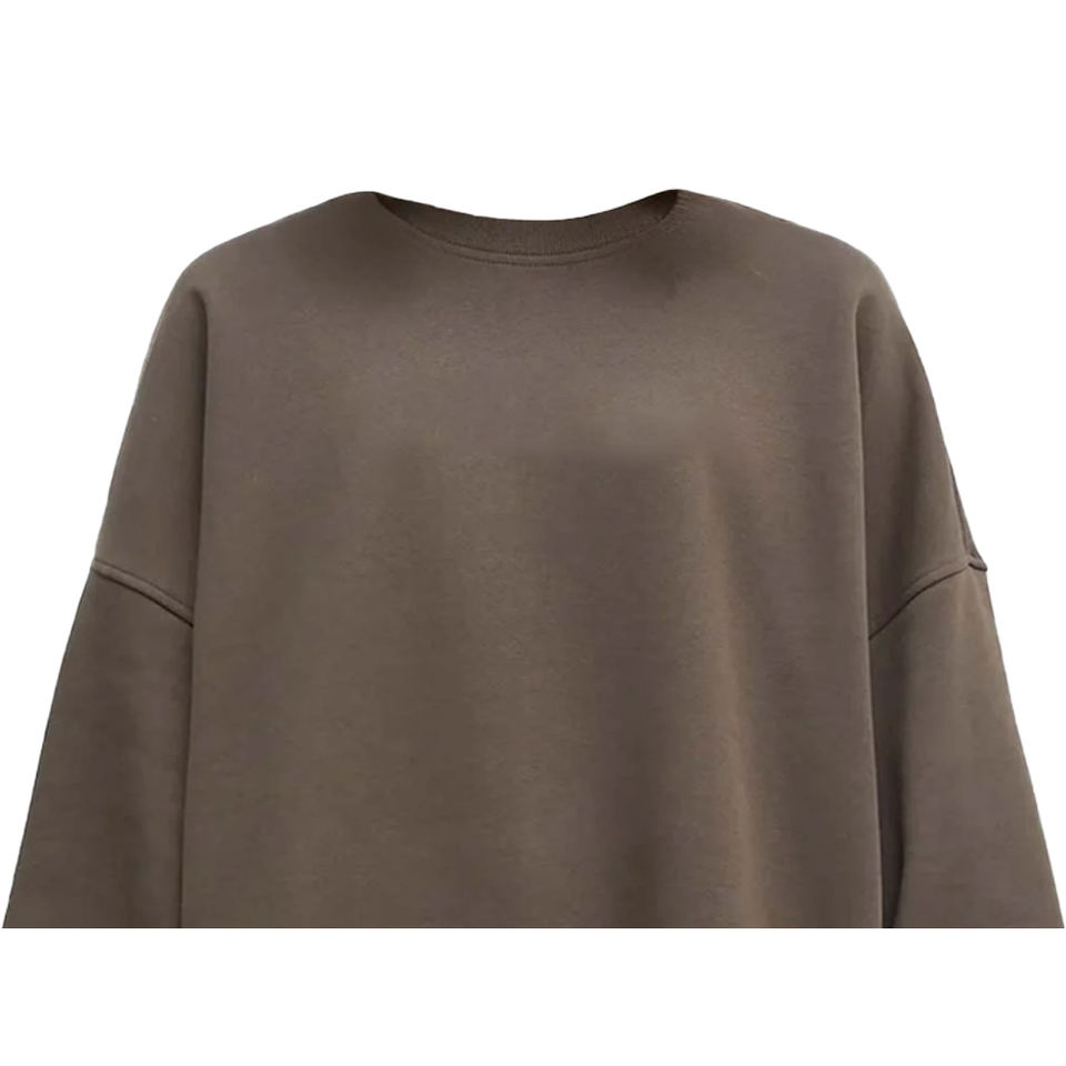 Eco-Friendly Winter Women's Solid Embroidered Breathable Fleece Crew Neck Sweatshirt Front Pure Brown Windproof Polyester/Cotton