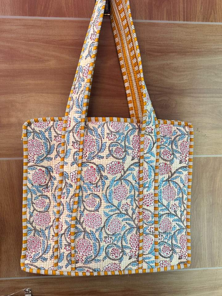 Eco-Friendly Women's Hand-Block Print Floral Cotton Quilted Mini Tote Bag Bohemian Shoulder Bag Spring Summer Zipper Everyday
