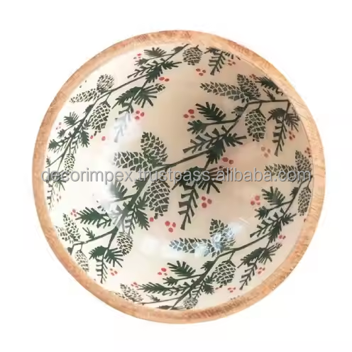 Eco-Friendly Wood Salad Bowl Multi-Color Wooden Enamel Printed round Serving Bowl Wholesale wooden bowl