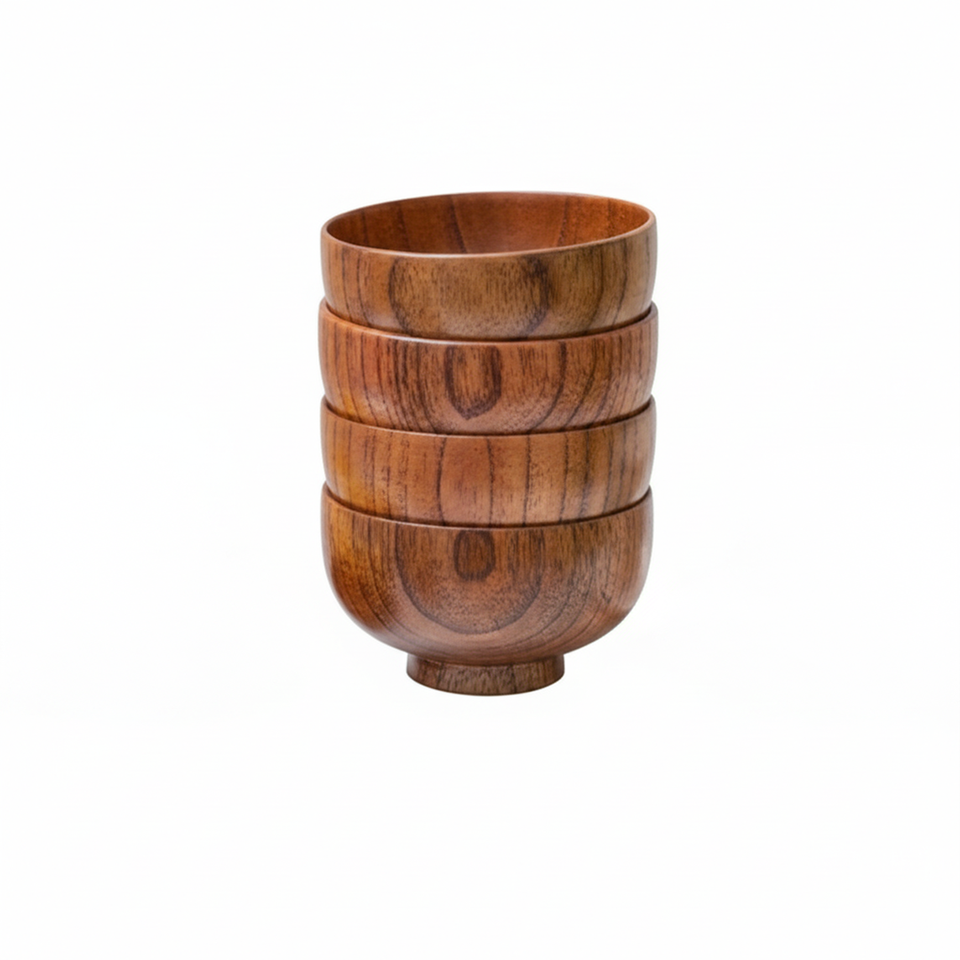 Eco Friendly Wooden Bowl Set Of 4 Solid Wood Snack Bowls For Soup Cereal Curry Serving Premium Rustic Dining Kitchen Accessories