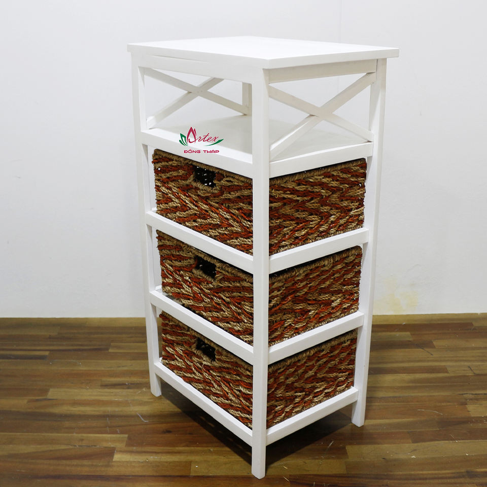 Eco-Friendly Wooden Frame Four-Tier Seagrass Basket Cabinet for Natural Home Storage and Decoration