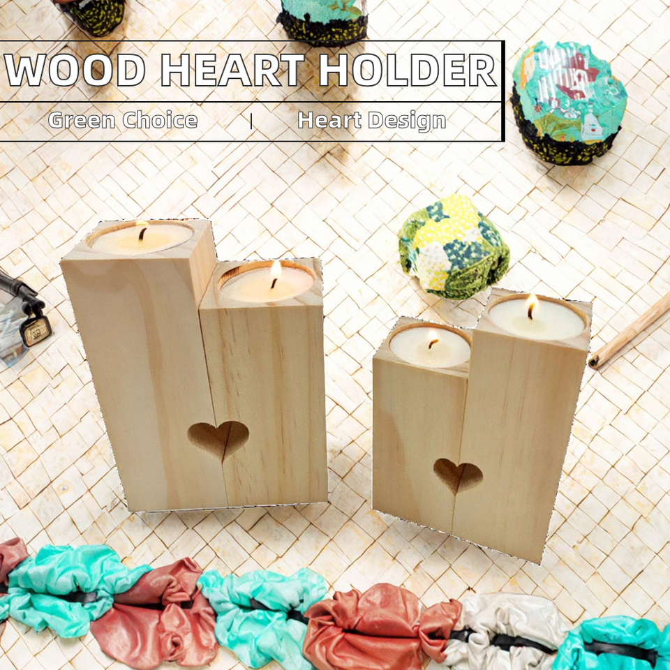 Eco-Friendly Wooden Heart Candlestick Holder for Home Decor and Halloween Atmosphere Couples Gift