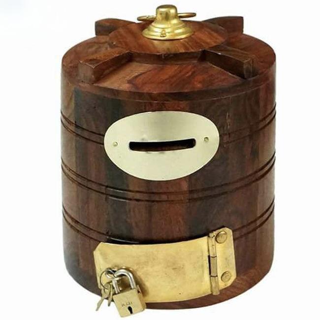 Eco-Friendly Wooden Money Bank with Polished Brass Work-Soft Interior for Delicate Items