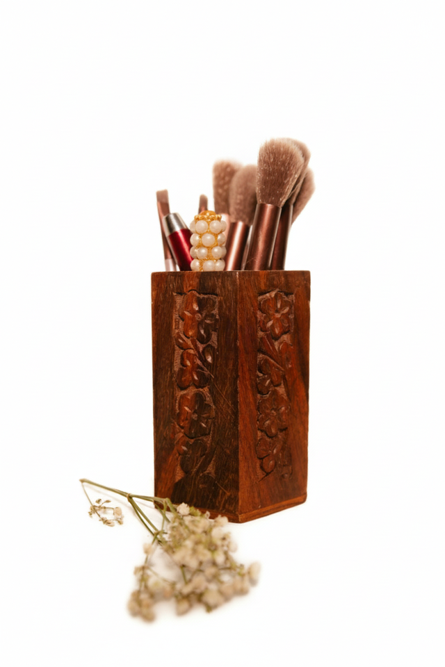 Eco-Friendly Wooden Pen Holder & Pencil Stand Modern Design Durable Handmade Desk Organizer with Round Shape for Office Home Use