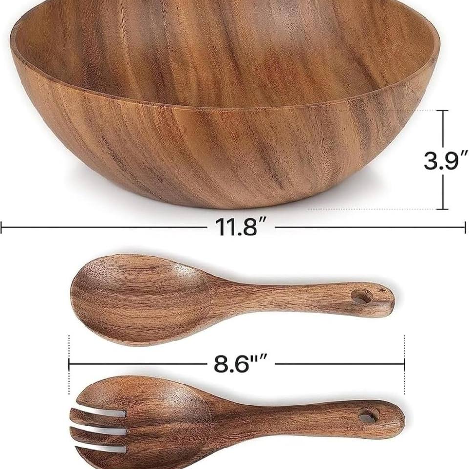 Eco Friendly Wooden Salad Serving Bowl with Spoon and Fork Set Perfect for Kitchen Dining and Party Use Acacia Wooden Bowl
