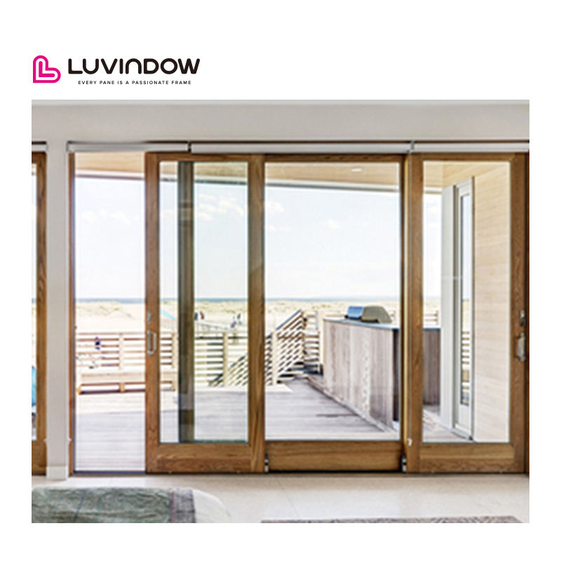 Wooden Slide Doors Temepered Glass Aluminum Clad Wood Sliding Doors