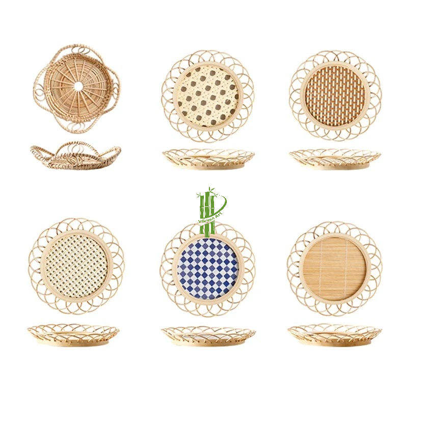 Eco Friendly Woven Rattan Cup Coaster with Durable Metal Rim, Decorative Beverage Mat for Coffee Shops, Dining Tables and Gifts