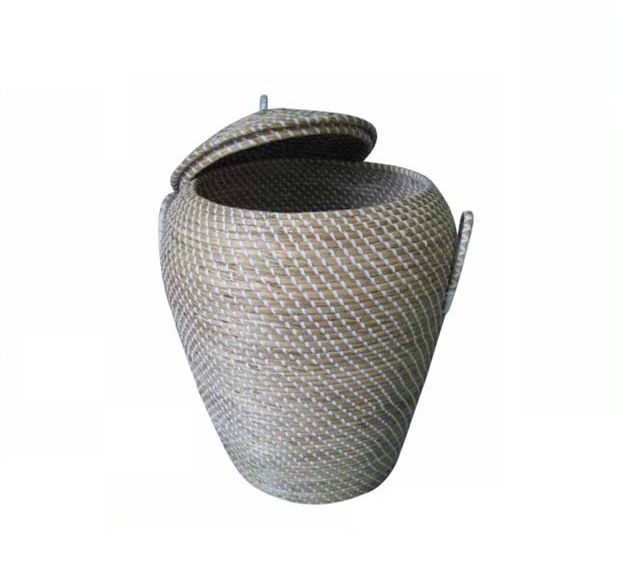Eco-Friendly Woven Water Hyacinth Modern Rectangle Belly Basket Handles Storage Laundry Picnic Water Hyacinth Laundry Basket Lid