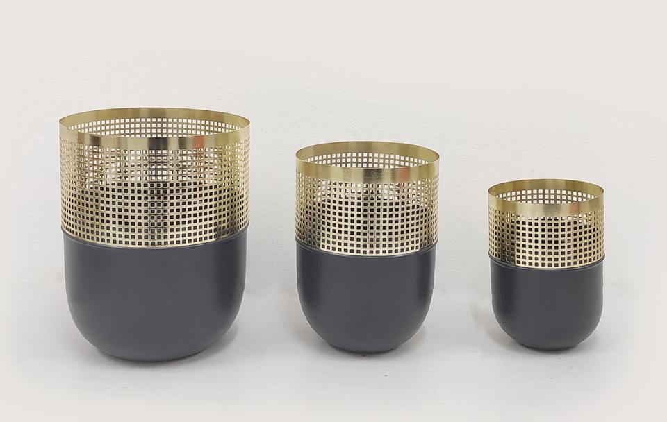 Eco Friendly metal flower pot and planter with subtle detailing and contemporary shape for modern homes