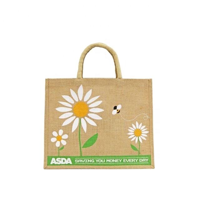 Eco Jute Tote Bag with Screen Pattern Custom Logo Option Promotional Gift Shopping Bag