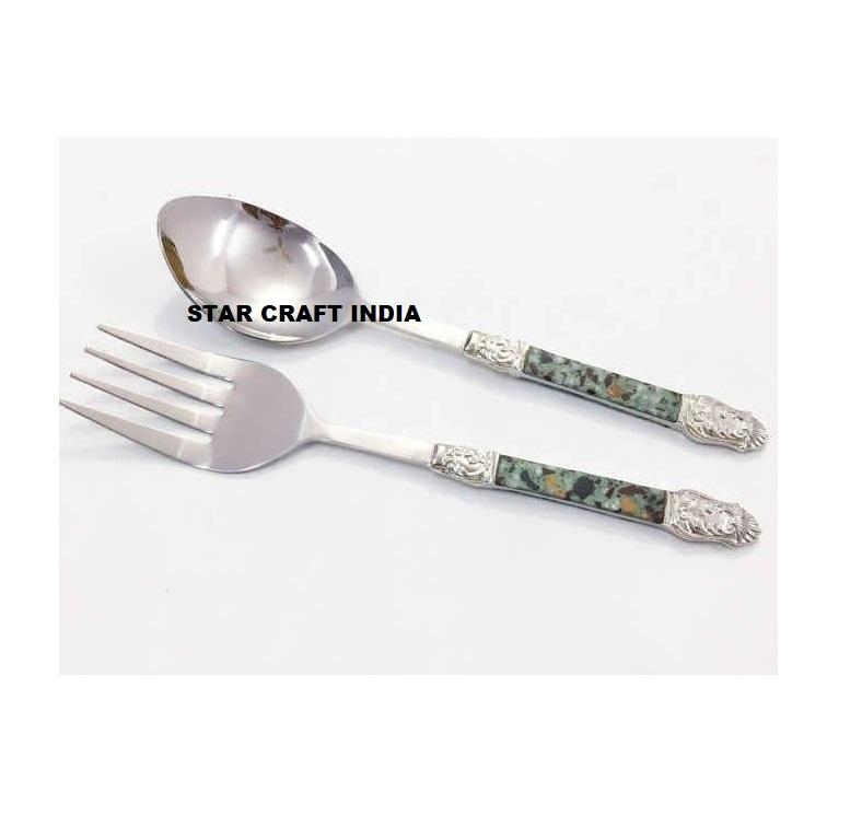 Eco Material Mango Wood Salad Server Set Manual Hand Serving Spoon and Fork Set Kitchenware Salad Tools Resin Handle Tableware