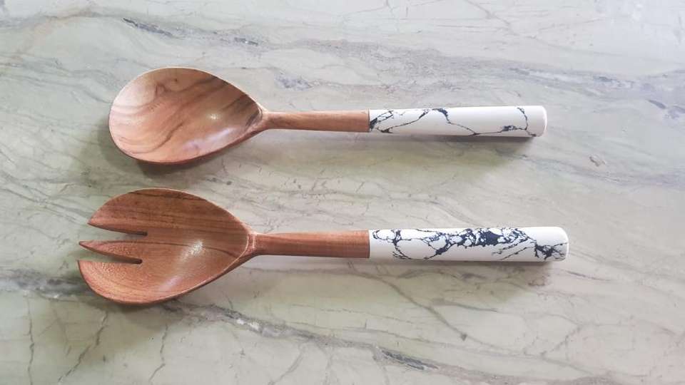 Eco Material Origin Natural Acacia Wood Salad Server Set With Resin Handle Custom Vintage Wooden Salad Serving Spoon Fork Set