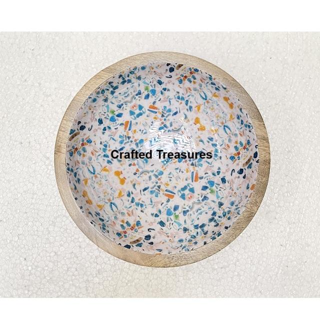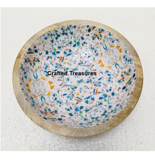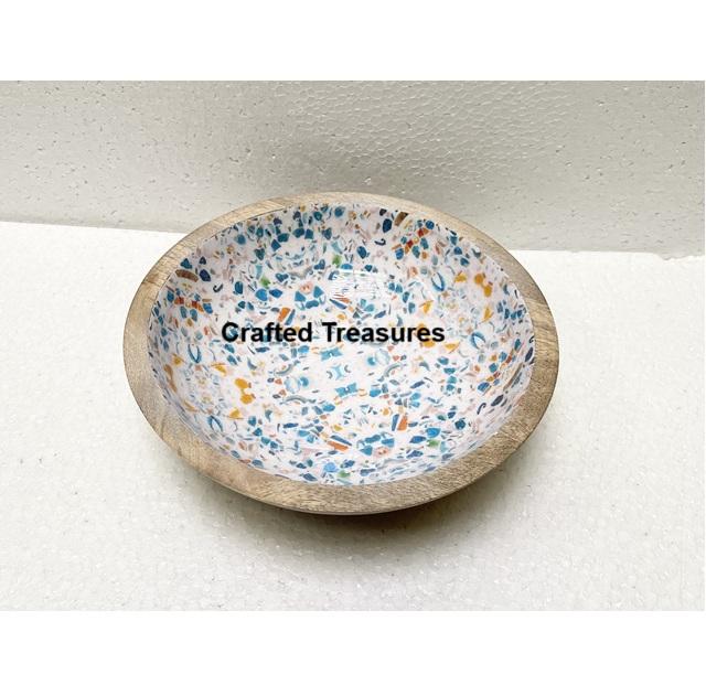 Eco Material Table Decorative Salad Bowl with Printed Enamel Glossy Finished Dinnerware Wood Bowl for Sale Product Best Seller