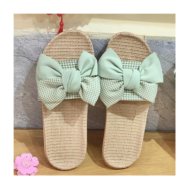 Eco Seagrass Slippers With Green Bow Handcrafted Seagrass Slipper Handmade Indoor Slide Shoes For Women Spa And Home Use