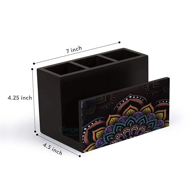 Eco Sustainable Wooden Spoon Holder with Artistic Mandala Pattern Three-Layer Adjustable Standing Type Plastic Free Kitchen