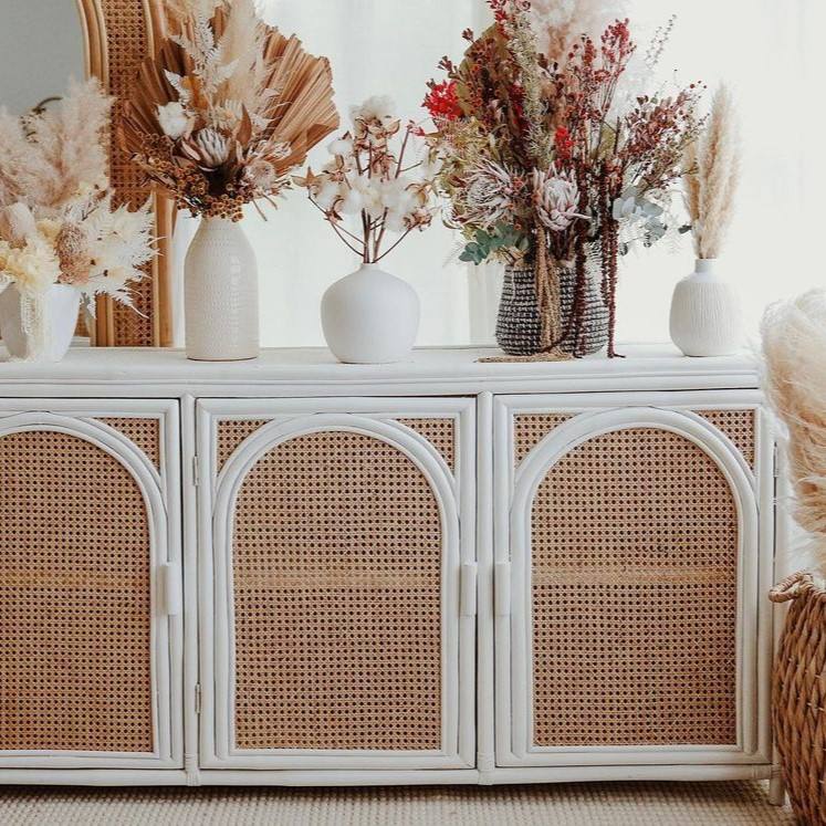 Premium Quality Natural White Rattan Cupboards Wholesale Living Room Wicker White Sideboard Cupboard Cabinets