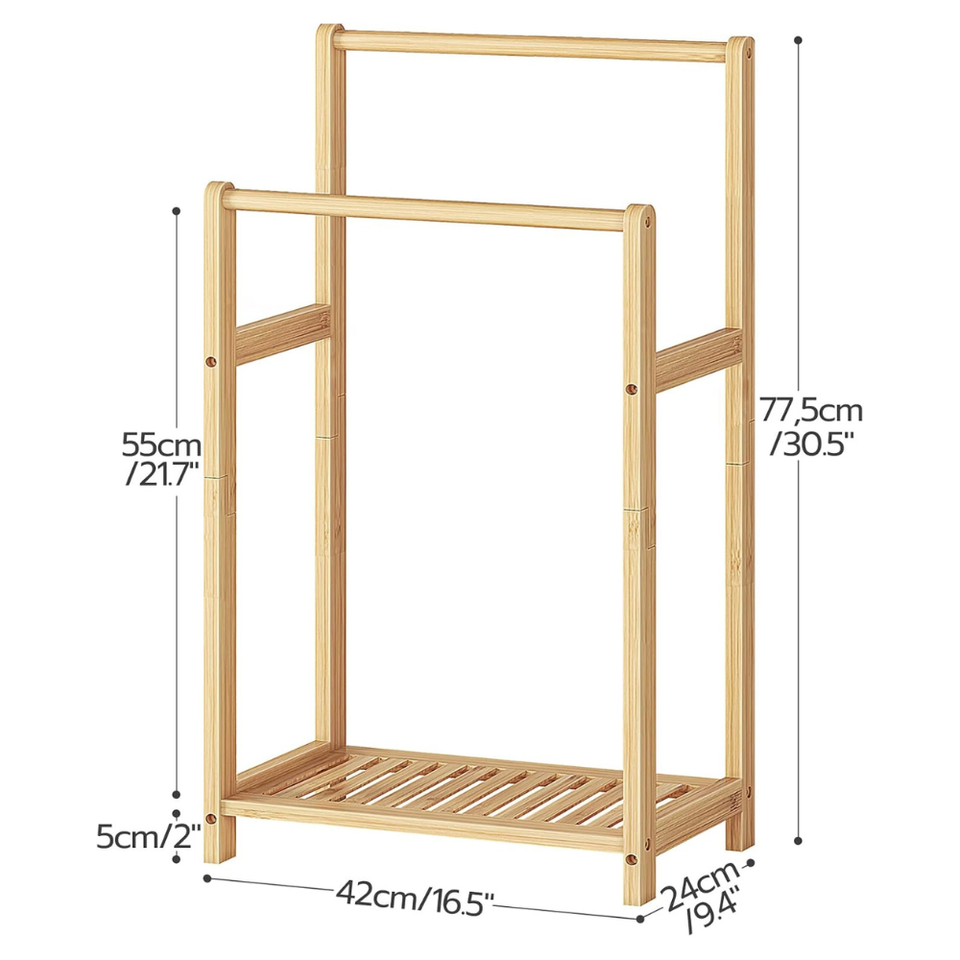 Eco-friendly 2-Tier Freestanding Bamboo Towel Rack Decorative Wooden Home Office Furniture for School Use Made in Vietnam