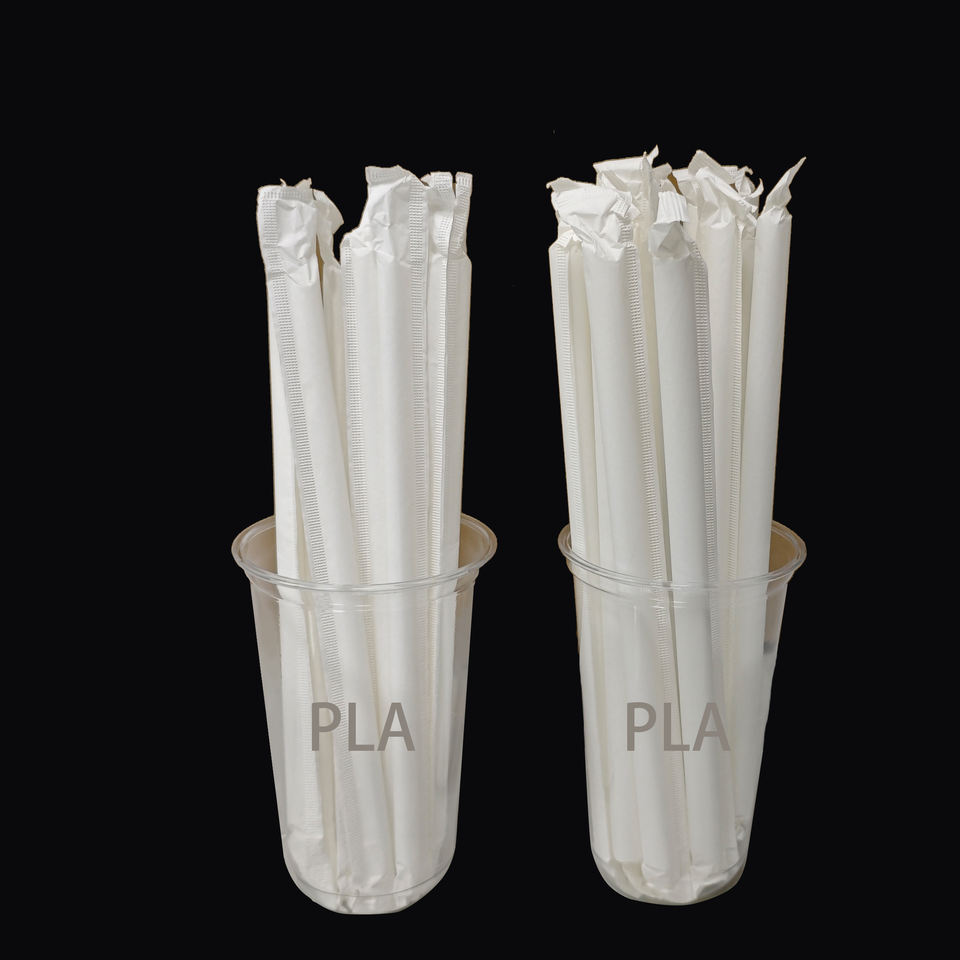 Eco-friendly Biodegradable Disposable PLA Thick Plastic White Boba Straws Individually Wrapped