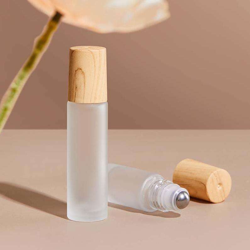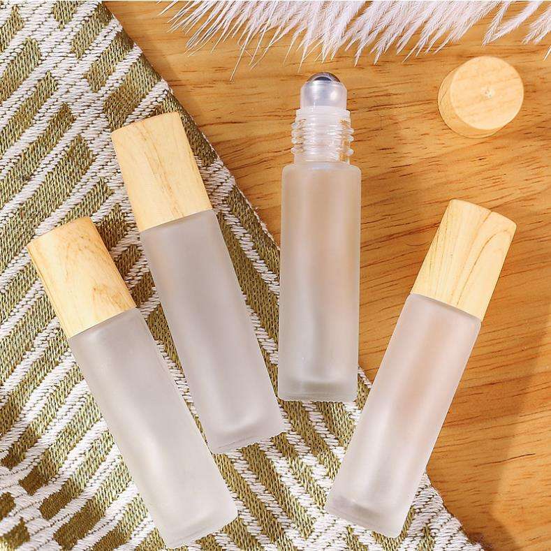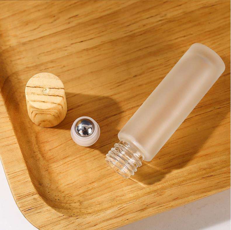 Eco-friendly Clear Amber Perfume Sample Roller Bottle 10ml Glass Roll on Bottle with Bamboo Lid and Rollers