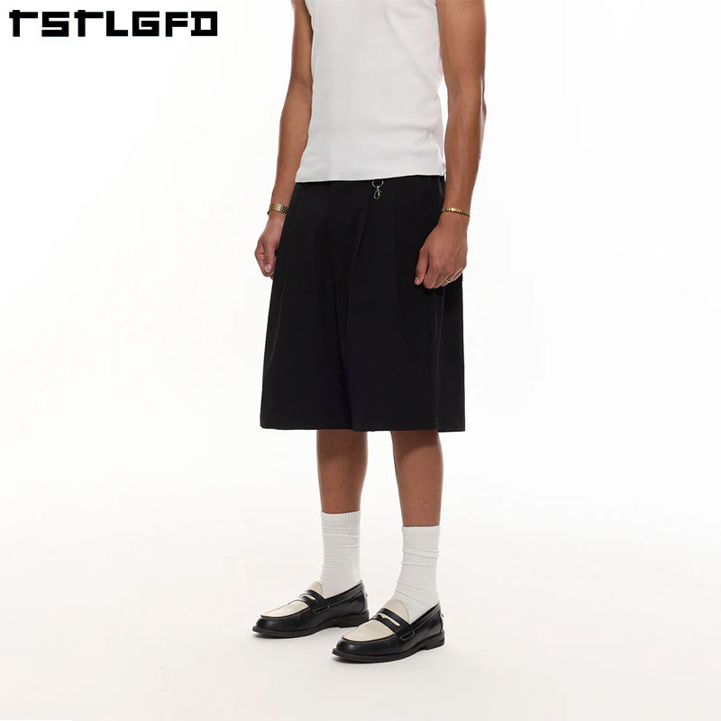 Eco-friendly Clothes Uniform Suit Pants Workwear Bermuda 380gsm Cotton Polyester Men's Double Pleated Knee Length Shorts