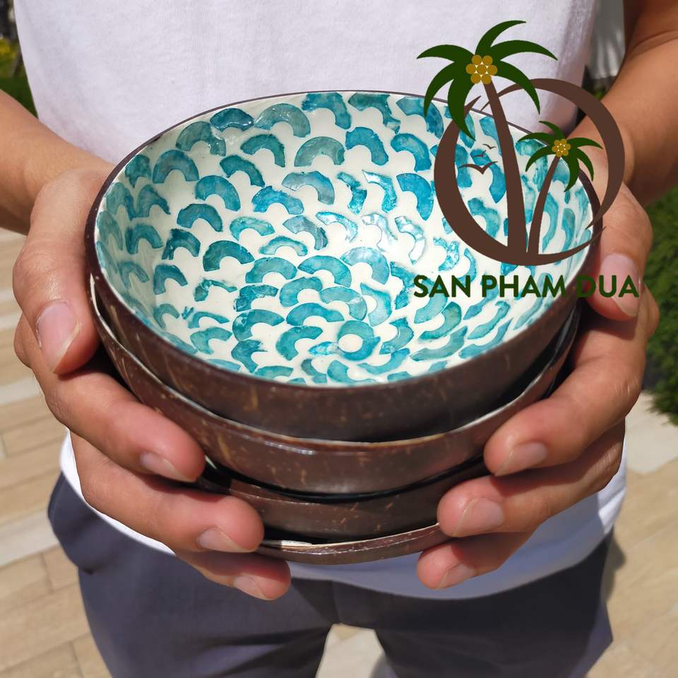 Eco Friendly Coconut Lacquer Bowl/ Colored Bowl with Various Pattern Handmade/ Coconut Bowl Coconut Wood Bowl Smoothie Bowl