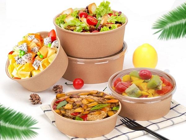 Eco-friendly Factory Kraft Paper Bowls Container Disposable Paper Bowl 750ml 1000ml with Lid Food Salad Packing lunch box