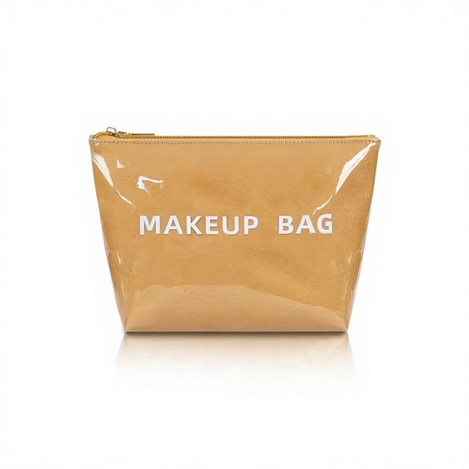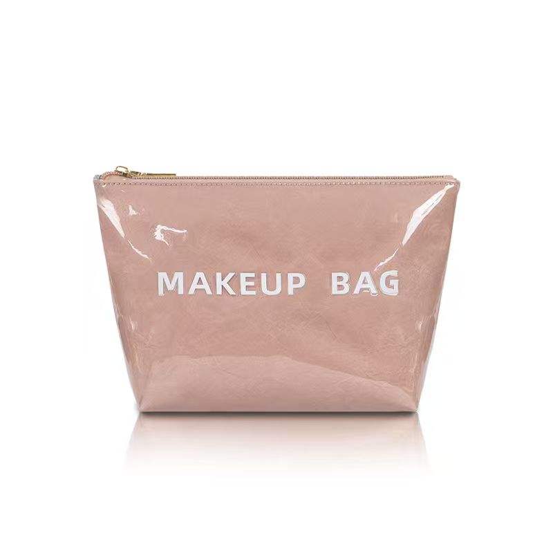 Eco-friendly Fashion PVC Portable Cosmetic Clutch Bag DuPont Paper Texture Large Capacity Zipper Closure Letter Pattern