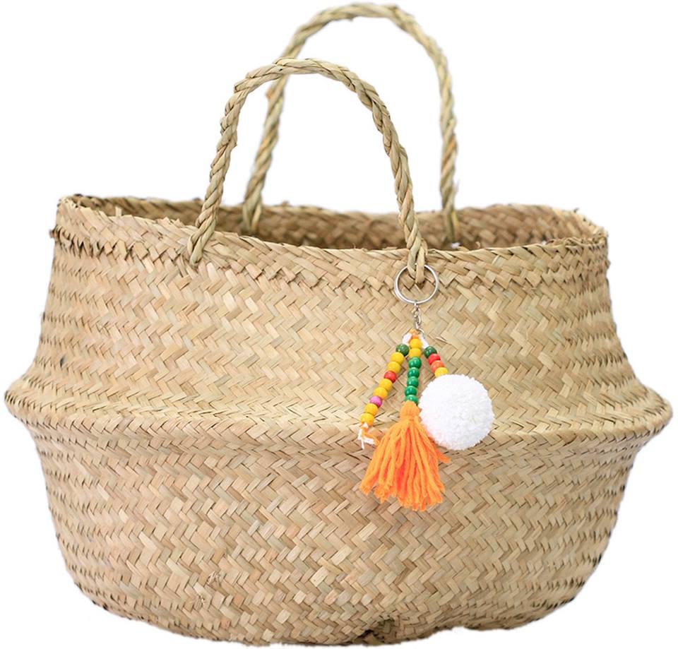 Eco-friendly Seagrass Belly Basket with Tassel Foldable Indoor Home Organization Gift Basket for Kitchen Use Wholesale Vietnam