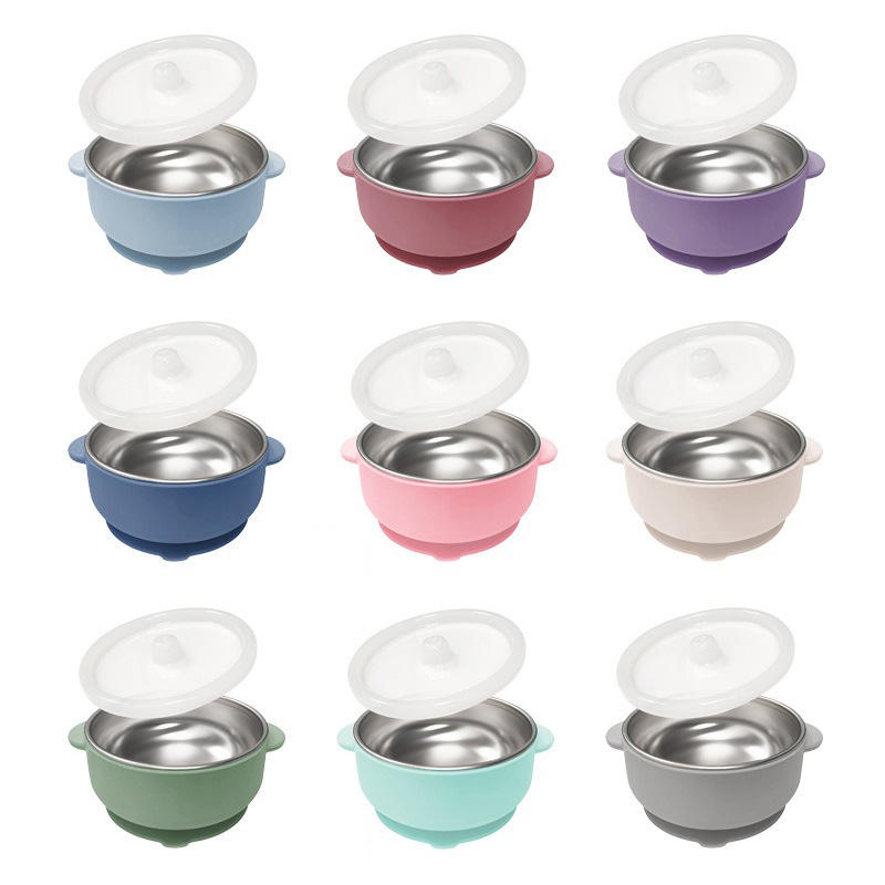 Eco-friendly Food Grade Silicone Baby Feeding Set with Leak-Proof Lid Nine Modern Colors Dishwasher Safe