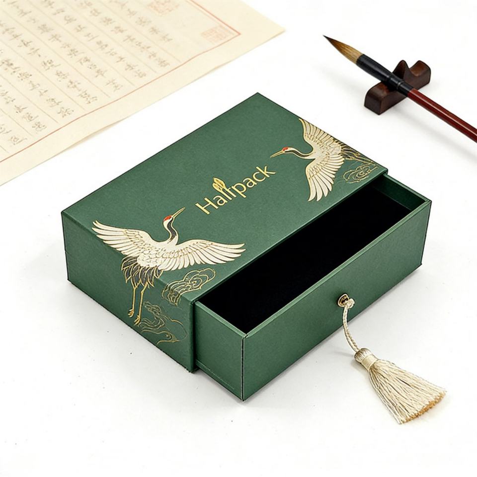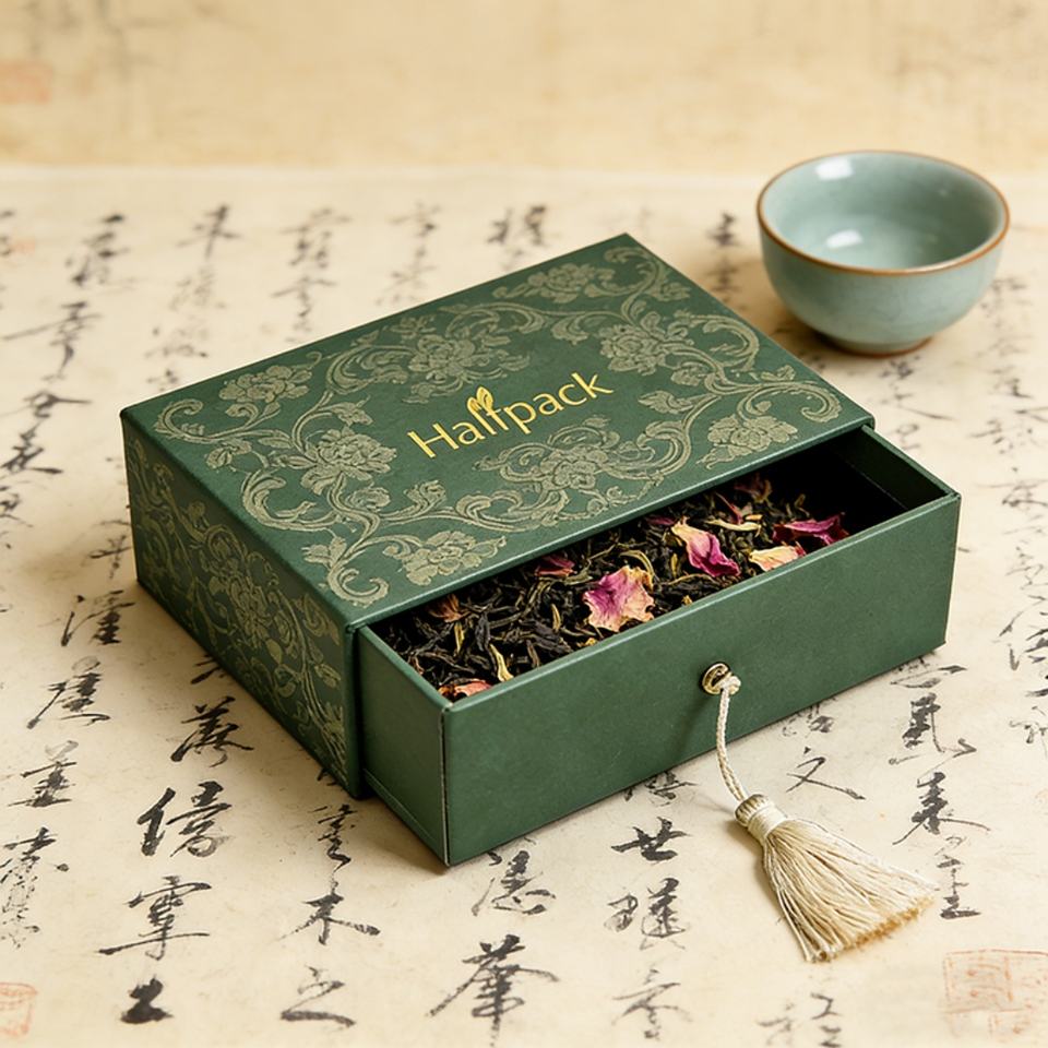 Eco-friendly Gift Drawer Box with Handle Offset Printing Recyclable High-end Paper Cardboard Tea Box Packaging